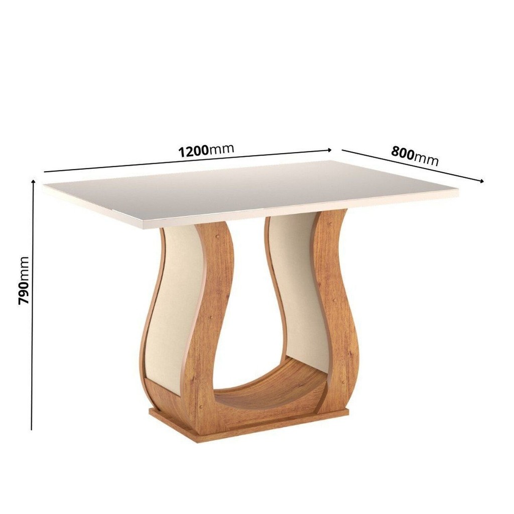 Mesa de Jantar Inovare retangular 120x80 cm, perfeita para 4 lugares. Possui tampo em MDP com vidro de 0,4cm, que garante resistência e sofisticação. Sua base estofada agrega charme e elegância ao ambiente, unindo design contemporâneo e funcionalidade. Ideal para compor salas de jantar modernas com conforto e estilo Estilo: Moderno Formato: Retangular Peso (kg): 42.35 Dobrável: Não Garantia: 03 Meses Altura (cm): 79 Acabamento: Pintura UV Extensível: Não Largura (cm): 120 Cor do Tampo: Transparente Possui Vidro: Sim Possui Portas: Não Possui Rodízio: Não Suporta Até (kg): 50 Profundidade (cm): 80 Escala de Brilho: Semi-Brilho Material da Base: MDF/MDP Serviço Montagem: 114259443 Material do Tampo: Vidro/MDP Origem do Produto: Nacional Acabamento da Base: Pintura UV Ambiente Principal: Sala de Jantar Espessura do Tampo (mm): 25 Material Principal: MDP Possui Prateleiras: Não Acabamento do Tampo: Pintura UV Quantidade de Lugares: 4 Possui Suporte Giratório: Não Informações Complementares (Novo): Mesa de jantar 4 Lugares Marca: Viero Cor do Produto: Mel/Off White Itens Inclusos: 1 Mesa, Kit Ferragens e Manual de Montagem Cor Predominante: Bege Linha ou Coleção: Inovare Medida da Mesa (A x L x P): A:79 x L:120 x P:80cm Medida do Tampo (L x C x E): L:120 x C:80 x E:2,5cm
