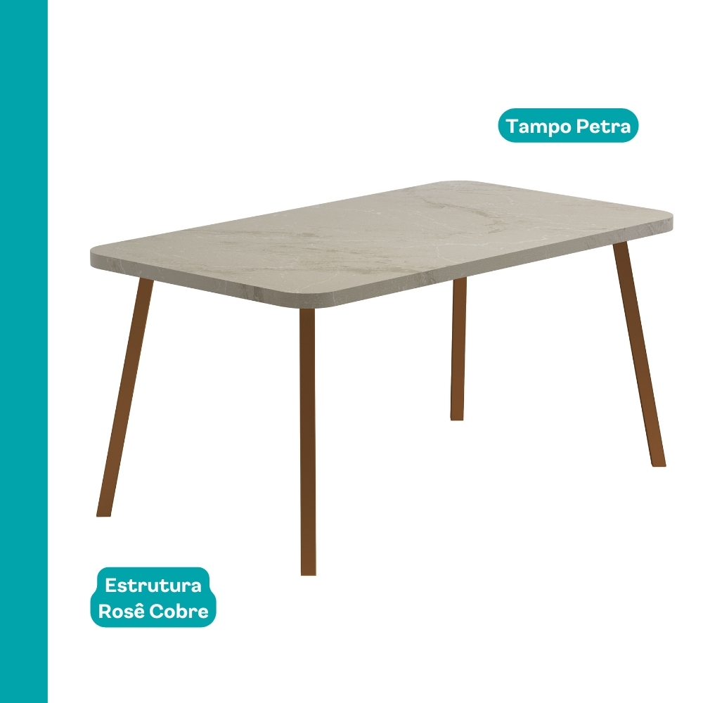 Mesa de Jantar 6 Lug Retangular 1,6m Stellar Carraro Pet Ros