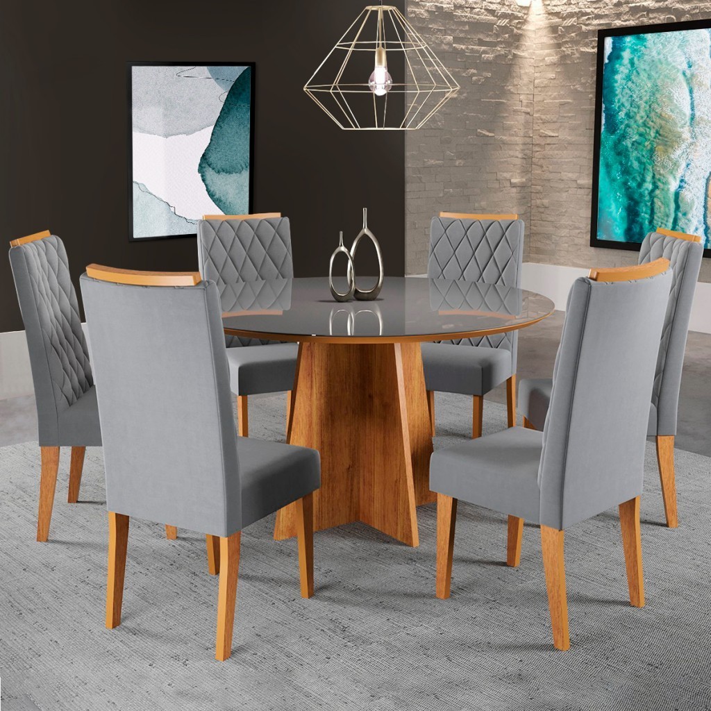 Mesa de Jantar 6 Lugares Isabela Diamantina com Vidro