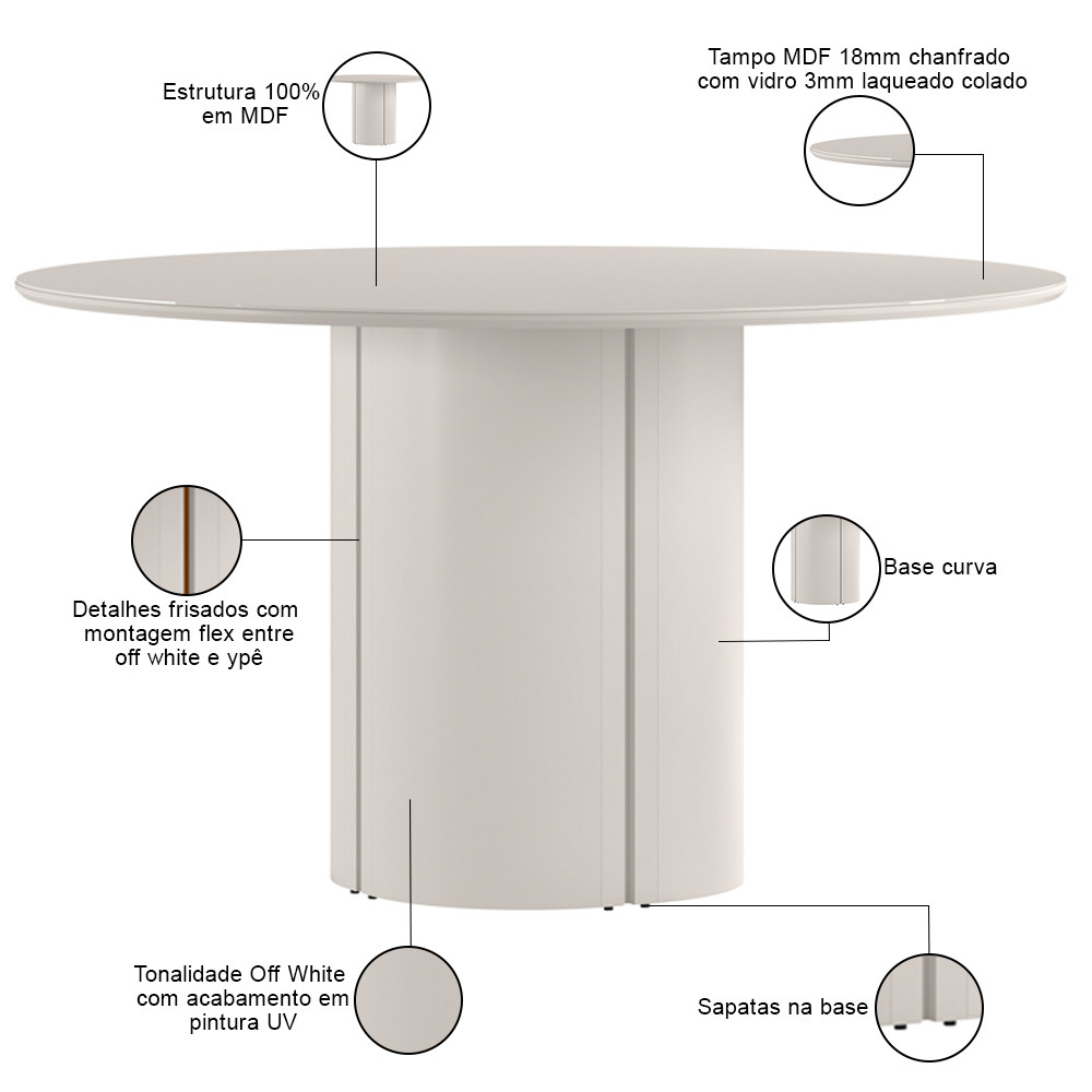 Mesa de Jantar 6 Lugares Redonda 135cm Verbena N01 Off White - Lyam Decor