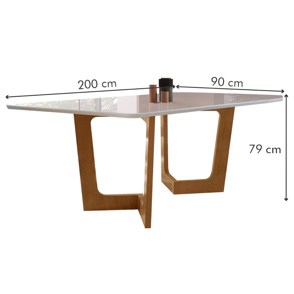 Mesa de Jantar 8 Lugares Nápoles/Genova com Vidro Cinamomo/Off White/Bege - Cel Móveis