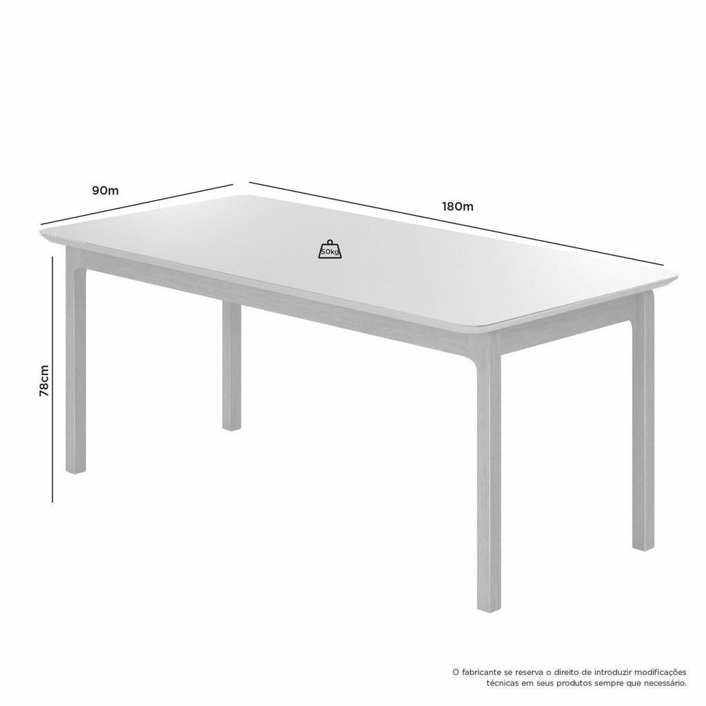 Mesa de Jantar Cativa 180cm X 90cm Retangular 6 Lugares Tampo Mdf com Vidro 180