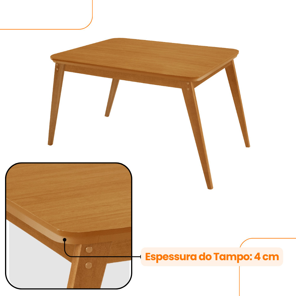 Mesa de Jantar Copper 120cm Madeira Tampo Canto Copo Moderna Mobília