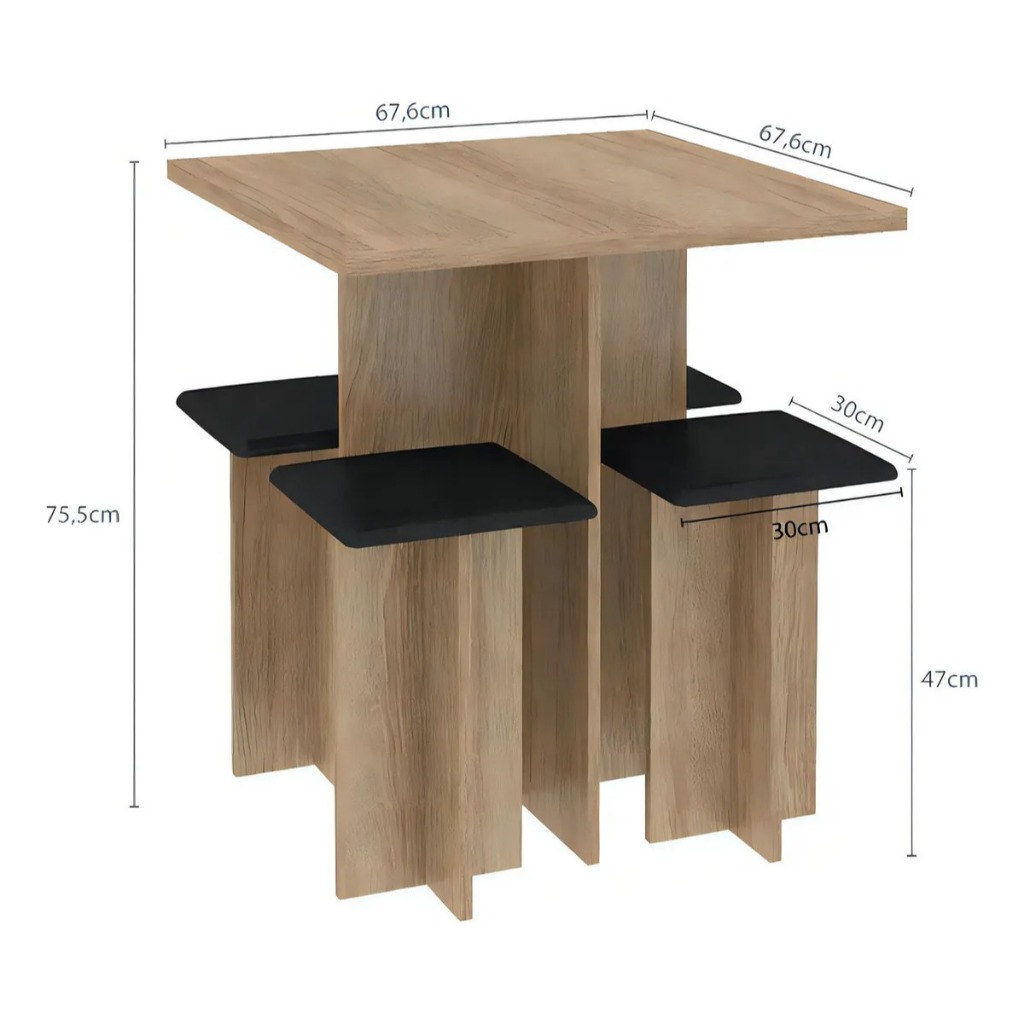 Jogo Mesa de Jantar Edna com 4 Banquetas Cor: Manchester/Preto Material: MDP Estofado banqueta: Espuma Medidas da Mesa: Altura: 75 cm Largura: 67 cm Profundidade: 67 cm Medidas da Banqueta: Altura: 47 cm Largura: 30 cm Profundidade: 30 cm Produto entregue desmontado Montagem por conta do cliente Antes de montar verificar se todas as peças estão em perfeito estado Caso tenha algum problema não exite em nos comunicar PARA COMPRAS DE MAIS DE UMA UNIDADE DO PRODUTO, A COMPRA DEVERÁ SER FEITA SEPARADAMENTE; REALIZAR A COMPRA DE UMA UNIDADE POR PEDIDO.