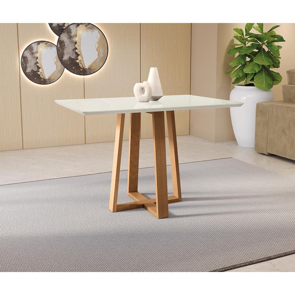 Mesa de Jantar Kappesberg em Madeira Maciça com Tampo de Vidro Off White 120cm