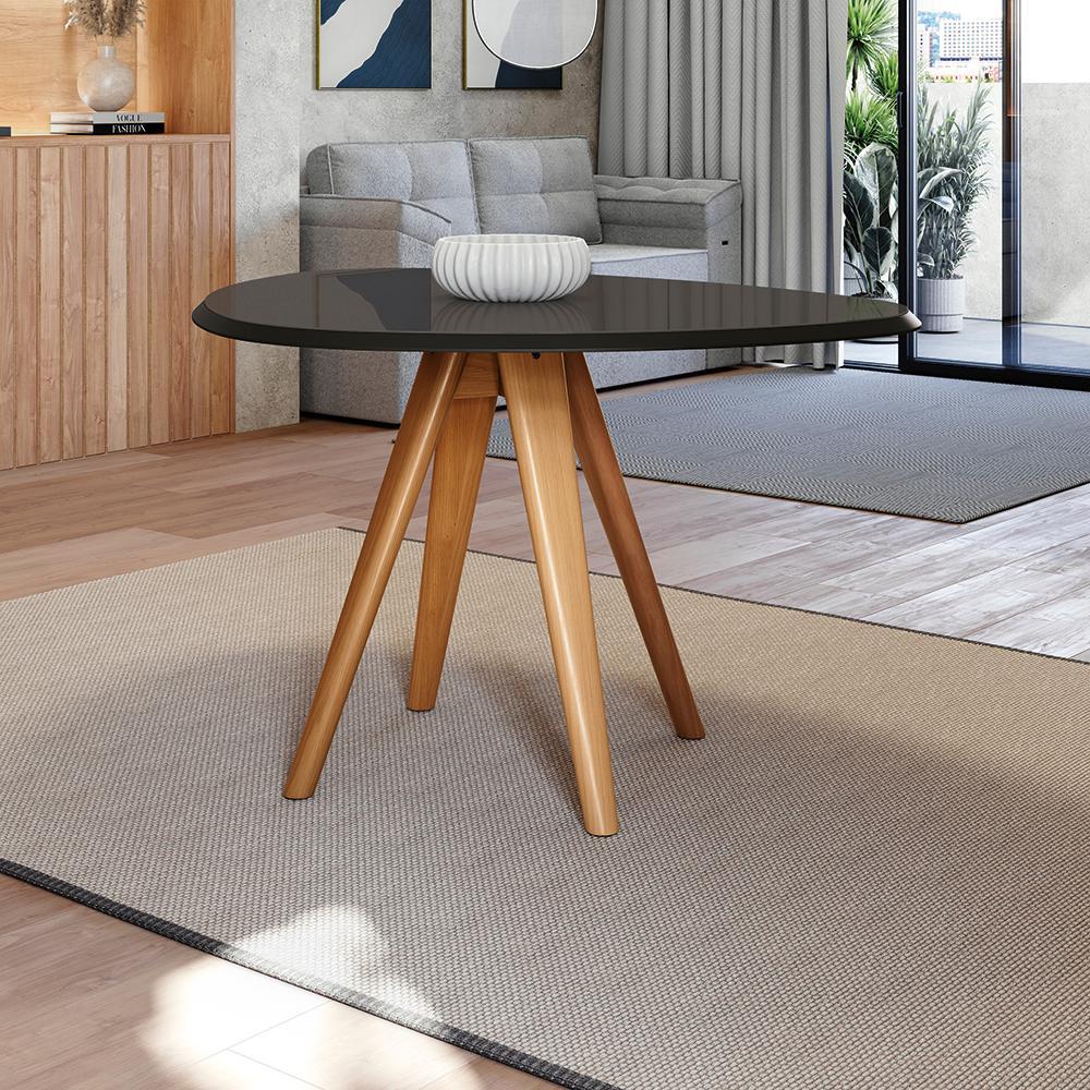 Mesa de Jantar Kappesberg em Madeira Maciça com Tampo de Vidro Preto Fosco 135cm