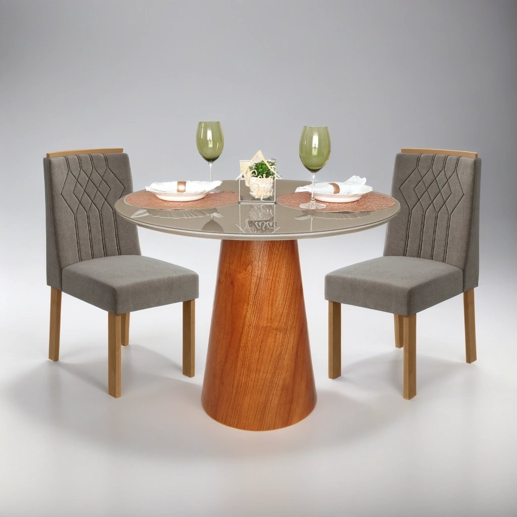 Mesa de Jantar Redonda 4 Lugares Tampo com Vidro Cairo Fendi