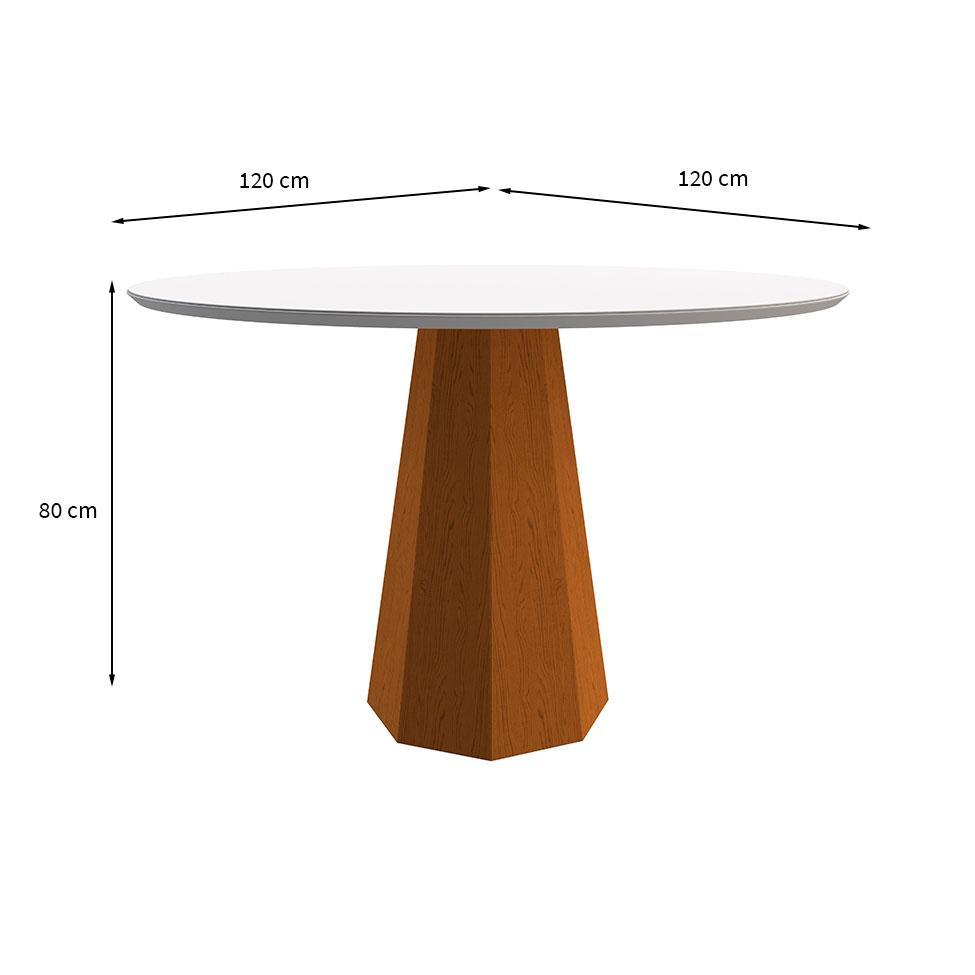 Mesa de Jantar Redonda com Tampo de Vidro Isis Off White e Ype 117 cm