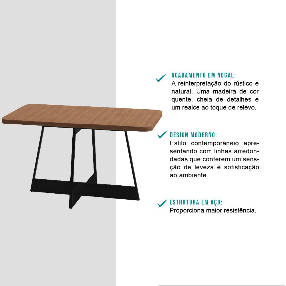 Mesa de Jantar Retangular 1,6 m Átria 1592 Carraro Nogal/Preto