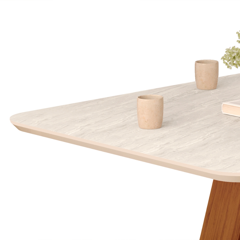 Mesa de Jantar Retangular Tampo Curvo DJ Móveis Kiara Freijó Quartzo