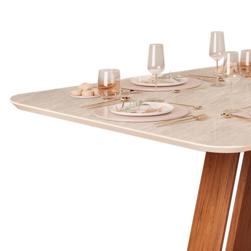 Mesa de Jantar Retangular Tampo Sem Vidro 170x90 DJ Móveis Kiara Freijó Quartzo