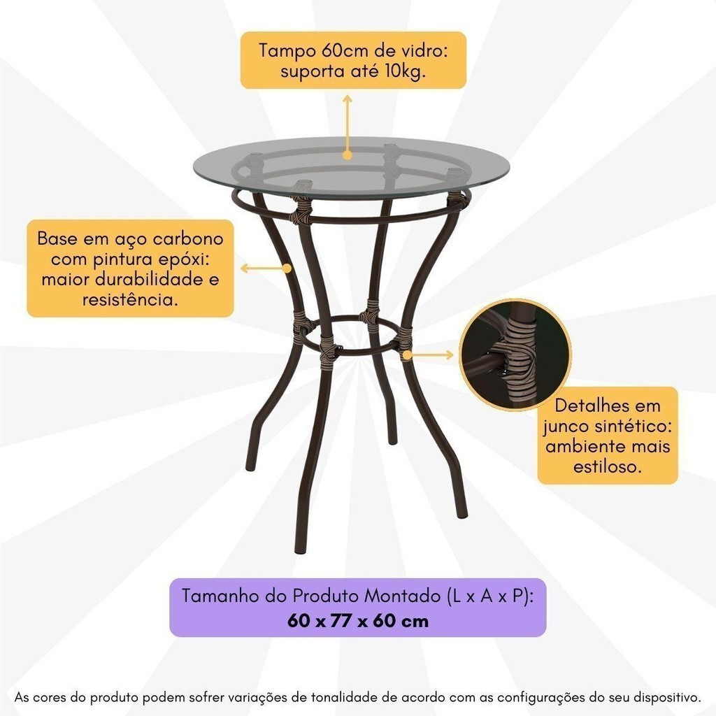 Mesa de Jardim/Área de Lazer 60cm Vidro e Aço com Junco Sintético Multimóveis CR8005