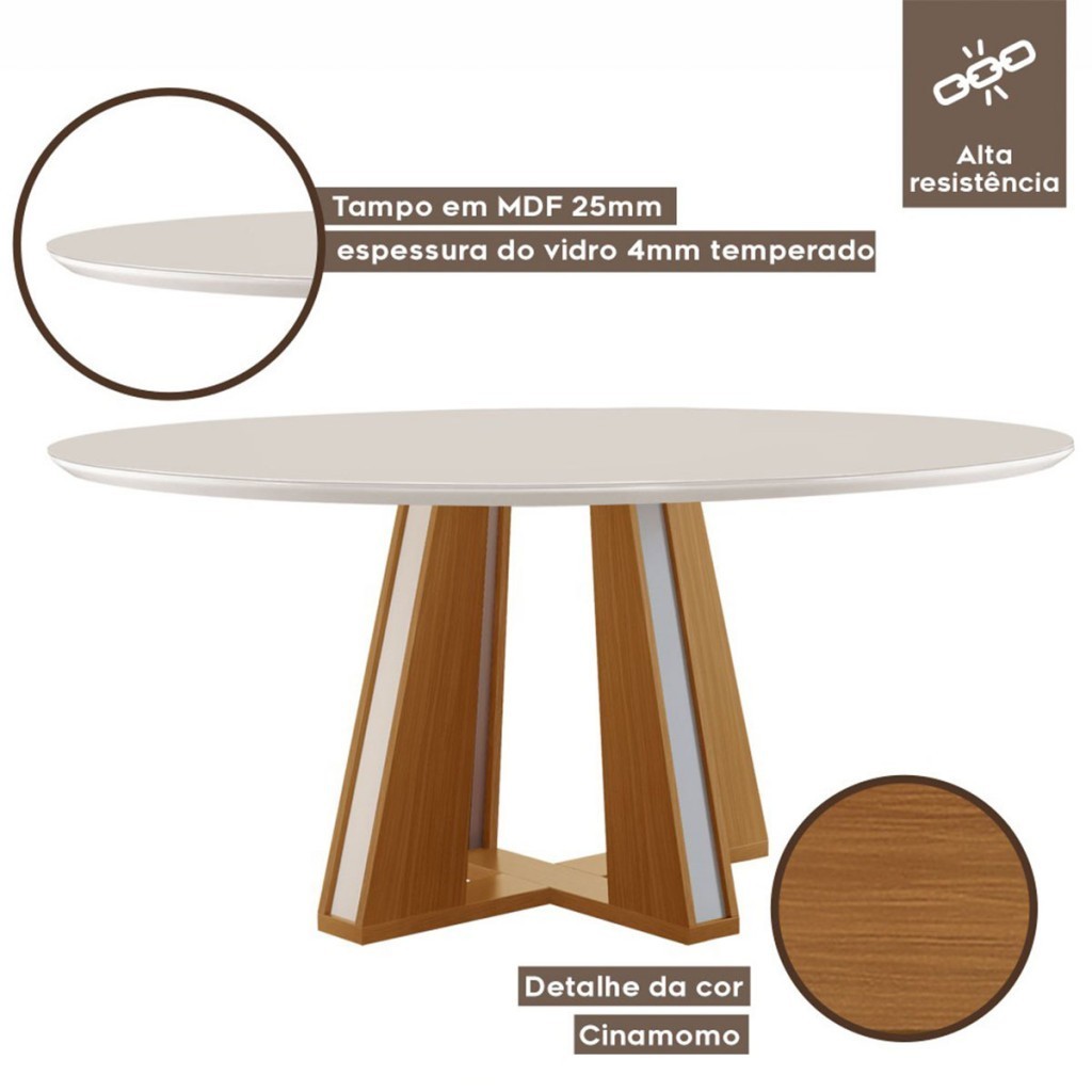 Mesa de Madeira Madri Redonda 100cm com Vidro