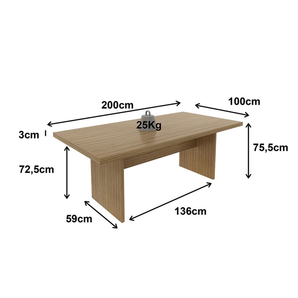 Descrição: A mesa de reunião ME-4119 da Tecno Mobili tem uma estrutura em MDP e revestimento em BP. Suporta até 25 kg. Sua montagem é feita através de cavilhas e minifix. Medidas do produto montado (A x L x P): 74,5 cm x 200,00 cm x 100,00 cm. Cadeiras e objetos decorativos não acompanham o produto. Características: - Acompanha Manual de Montagem: Sim - Possui Pés?: Sim - Como os Móveis Chegarão na Minha Casa: Desmontados, em caixas, acompanhados de todas as peças, ferragens e manuais para montagem - É frágil?: Sim - Possui Ripamento?: Não - Possui Borda de PVC nas Bordas?: Não - Montagem Invertida?: Não Pode ser Montado Invertido - Espessura do Tampo (mm): 15 - Possui Nicho?: Não - Quantidade de Pés/Sapatas: 2 - Material do Puxador: Não Possui - Pés com regulagem de altura?: Não - Material das Corrediças: Não possui - Material do Tampo: MDP - Pode Ser Montado Invertido: Não - Possui Vidro: Não - Possui espelho?: Não - Peso suportado no topo (Kg): 25 - Observação: Objetos decorativos que aparecem nas imagens, não acompanham o produto - Necessita de Montagem: Sim - Sistema de Montagem: Minifix e cavilha - Indicação de Uso: Escritório - Acompanha: Mesa + Kit Ferragem + Manual de Montagem - Possui Sapatas?: Não - Tipo de Mesa: Reunião - Formato da Mesa: Formato Retangular - Material das Dobradiças: Não Possui - Possui Rodízios?: Não - Garantia (dias): 90 - Grau de Dificuldade da Montagem: Médio - Recomendação de Manutenção: Limpar com pano levemente umedecido - Possui Vidro?: Não - Possui Espelho?: Não - Espessura da Estrutura: 15mm - Possui Gavetas?: Não - Possui Portas?: Não - Possui Puxadores?: Não - Possui Prateleiras?: Não - Revestimento /Acabamento: Pintura BP - Material dos Pés: MDP - Material da Estrutura: MDP - Escala de Brilho: Semi-Brilho