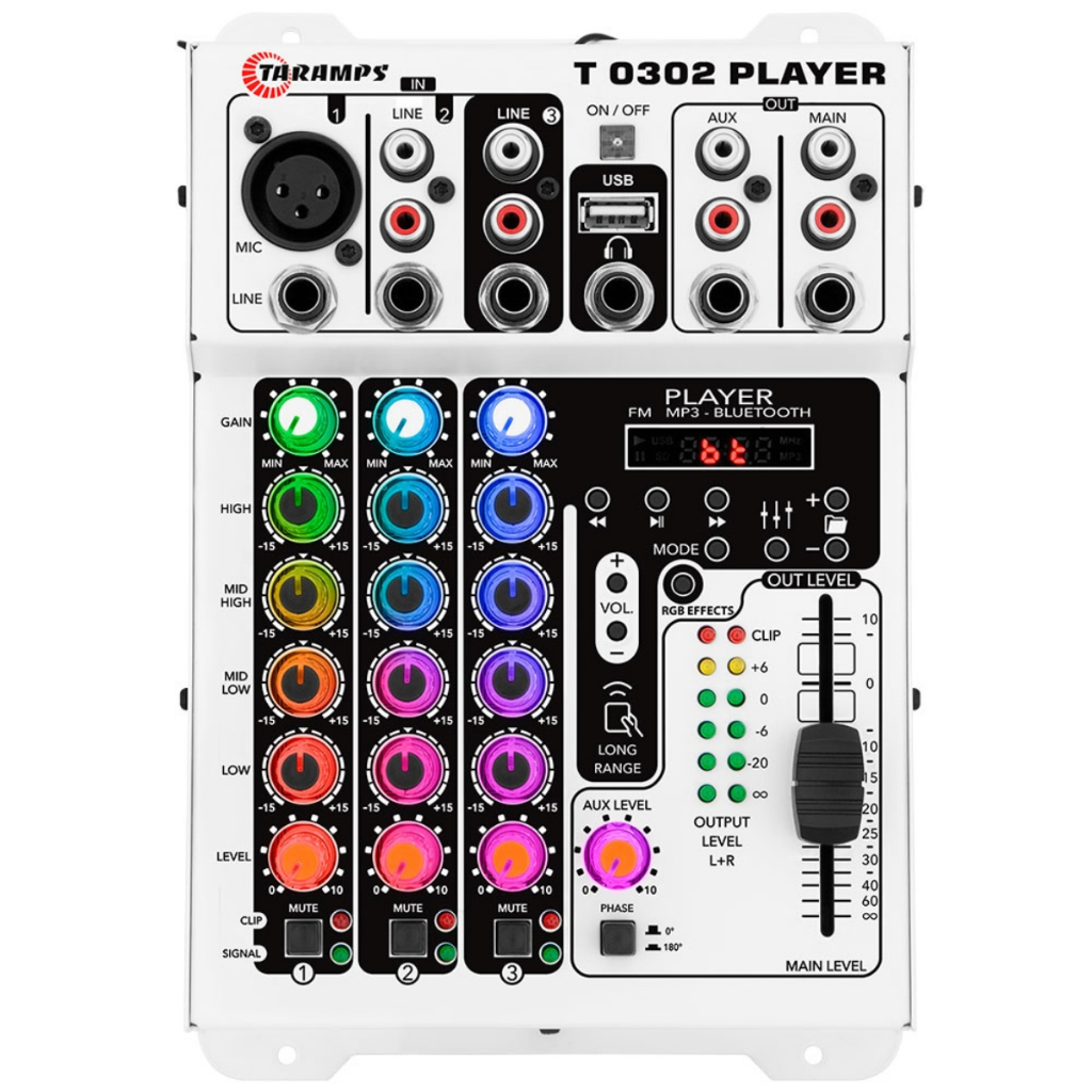 Mesa De Som 3 canais Taramps Player Multicolor Bt Usb 72 Efeitos Led T0302 FX Player 0302 led RGB