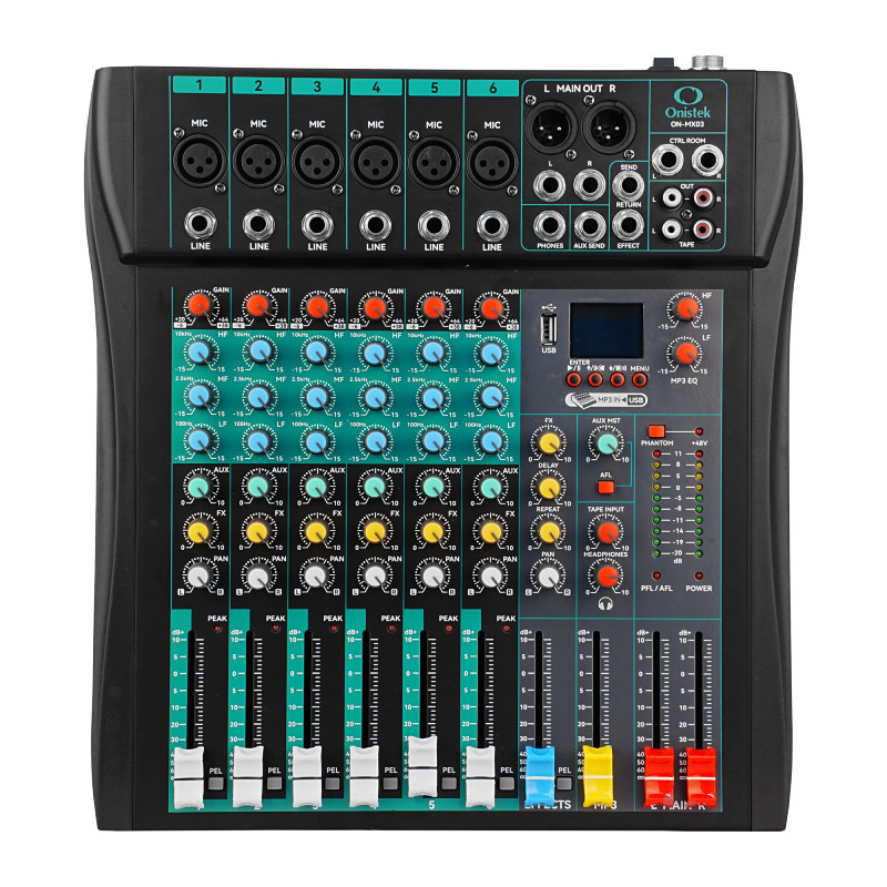Mesa de Som 6 Canais Compacta Efeitos Phantom Power Onistek ON-MX03
