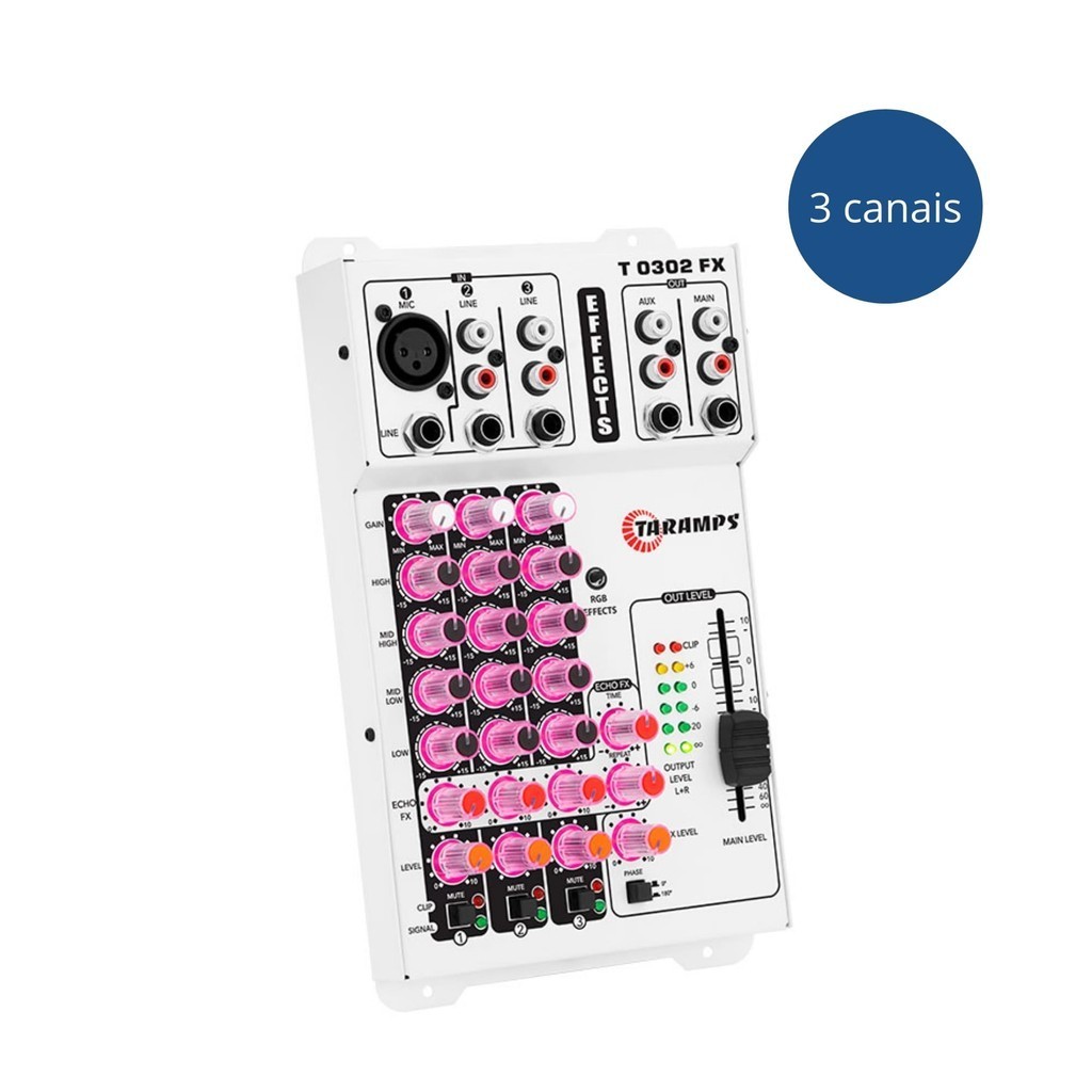 Mesa de Som T 0302 FX 69 Efeitos de Luz 3 Canais Multicolor Taramps - 901961