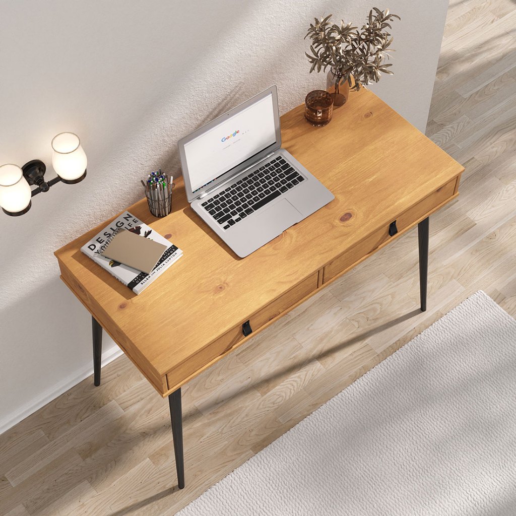 Mesa de Trabalho Escandinava Retrô 2 Gav Madeira Freijó Preto Wanda
