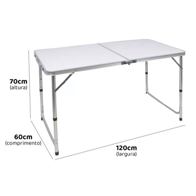 Mesa Dobrável Feita de Alumínio 120x60cm com Tampo MDF e Alça para Camping