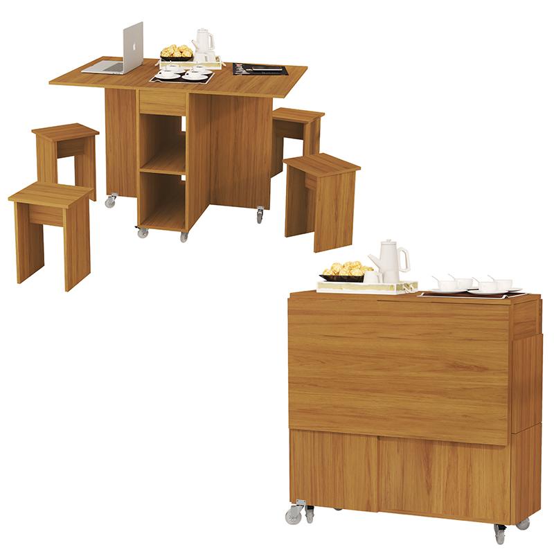 Mesa Dobrável Jade Com 4 Bancos De Encaixe e Rodízios