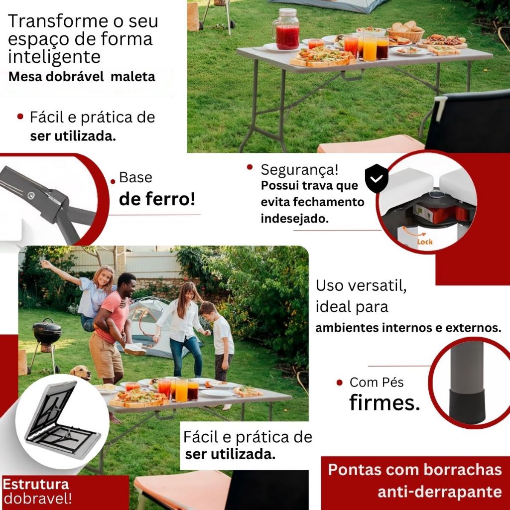 Mesa Dobrável Portátil 1,80 x 90cm Vira Maleta Com Alça Resistente