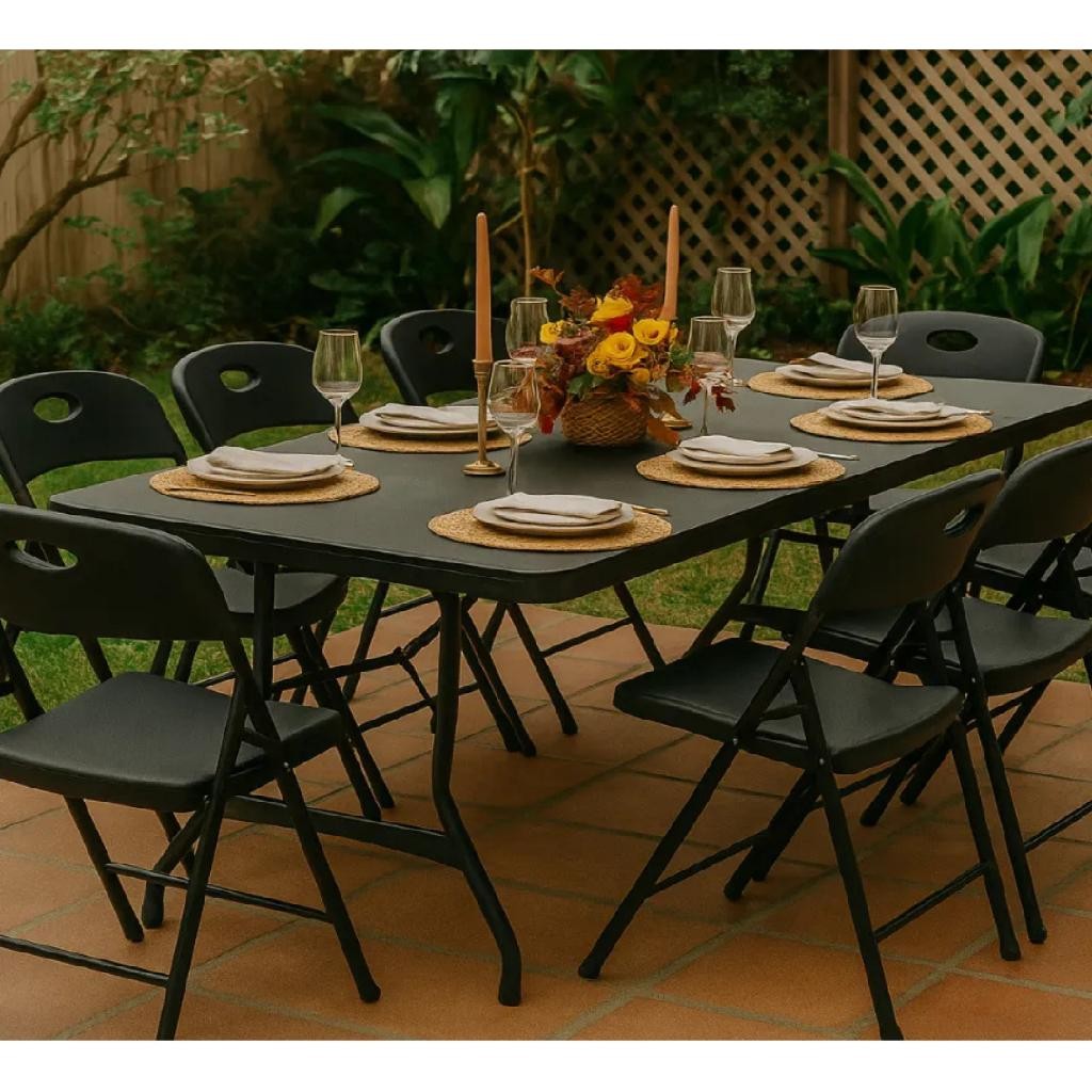 Versátil, resistente e fácil de transportar! Ideal para eventos, festas, camping, uso comercial ou doméstico. A Mesa Dobrável 180cm é a solução perfeita para quem busca praticidade sem abrir mão da qualidade. Com design funcional, ela se transforma em uma maleta compacta, facilitando o transporte e o armazenamento. Especificações do Produto: -Dimensões aberta: 180 x 70 x 74 cm (C x L x A) -Dimensões dobrada: 90 x 70 x 7 cm -Material do tampo: Painel em HDPE (Polietileno de Alta Densidade) – espessura de 3,5 cm -Estrutura: Aço reforçado 25x1 mm com pintura eletrostática cinza -Cor do tampo: Preto -Peso suportado: 150 kg (se bem distribuido) Perguntas frequentes: Qual a altura da mesa? - 74cm de altura 70cm de largura e 180 cm de comprimento. Qual o acabamento do tampo? -Acabamento liso Suporta até quantos kilos? - 150 kg Qual o peso da mesa? - Ela pesa 11 kg