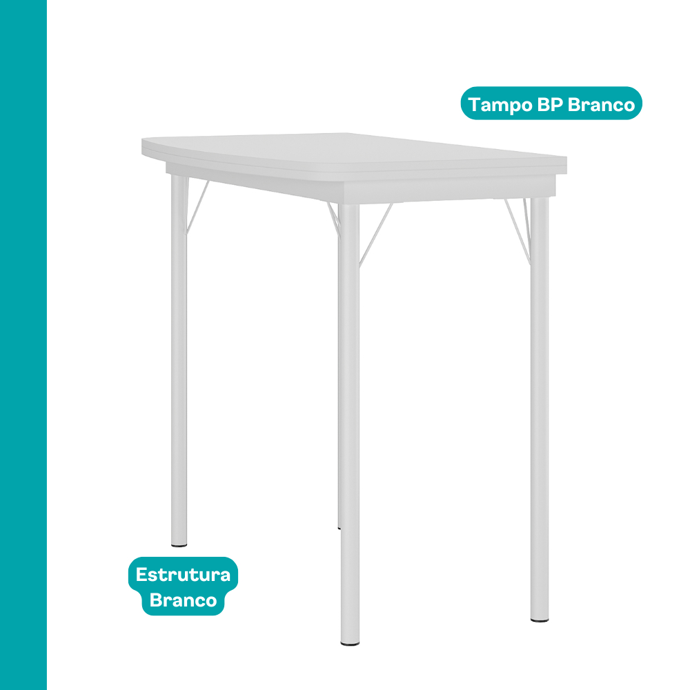 Mesa Dobrável Tampo Branco Tubos Brancos Carraro