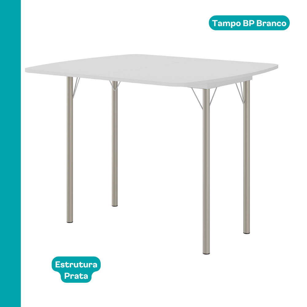 Mesa Dobrável Tampo Branco Tubos Prata 216 Carraro