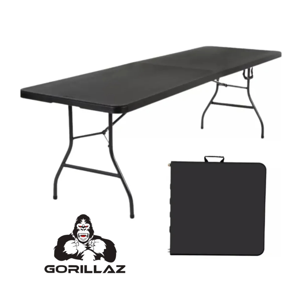 MESA DOBRÁVEL VIRA MALETA COM ALÇA PORTÁTIL 1.80M PRETA GORILLAZ A Mesa Maleta Gorillaz é a união perfeita entre força e praticidade. Com 1,80m de comprimento, ela oferece um amplo espaço de uso, mas se transforma em uma maleta compacta e leve para carregar em segundos. O acabamento em preto confere um visual moderno, sofisticado e mais resistente a manchas do que as mesas brancas convencionais. Design Inteligente (Vira Maleta): Sistema de fechamento central que reduz o tamanho da mesa pela metade. Com a alça integrada, você a transporta como uma mala de mão. Tampo em Polietileno de Alta Densidade (HDPE): Material extremamente resistente, fácil de limpar e com proteção contra raios UV e umidade. Estrutura Ultra Reforçada: Pernas em aço pintado com epóxi (anticorrosão) e conectores de alta resistência, suportando cargas elevadas com estabilidade total. Segurança Máxima: Possui travas de segurança central e anéis de travamento nas pernas, impedindo o fechamento acidental durante o uso. Marca: Gorillaz Cor: preta Comprimento Aberta: 1,80 metros X 75 Largura X 70 Altura Capacidade de Carga: Suporta até 100kg (distribuídos) Material do Tampo: Polietileno de Alta Densidade (Preto) Material da Base: Aço Carbono com pintura eletrostática Peso do Produto: Aprox. 10kg Medidas como maleta em cm: 70A X 75L X 92,5C Ideal para: Eventos e Festas: Perfeita como mesa principal de buffet, recepção ou apoio para DJ. Exposições e Feiras: Montagem rápida para estandes de vendas e demonstração de produtos. Lazer em Família: Churrascos, campings e reuniões em casa onde é necessário espaço extra. Trabalho e Estudo: Excelente como bancada temporária de escritório ou oficina leve. Portabilidade: A estrutura dobrável com alça facilita o transporte e armazenamento. Durabilidade: Fabricada com materiais robustos para resistir ao uso contínuo. Dica Gorillaz: Por ser na cor preta, esta mesa é a favorita para eventos corporativos e festas noturnas, pois mantém a aparência de nova por muito mais tempo e não encarde com facilidade. *Imagens meramente ilustrativas Bem vindos a Maxx, tudo em um só lugar.