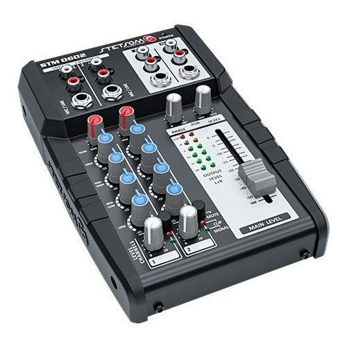 A Stetsom apresentou mais uma novidade para o de som automotivo: o A Mesa de Som Stetsom STM 0602. É pequena e leve, sendo montada em uma carcaça de chapa de aço com acabamento em ABS. Conta com Design robusto e é facilmente instalada, possuindo alimentação 12 volts com conexão P4, podendo ser utilizada em sistemas de som automotivo ou profissionais. Possui 2 canais de entrada com 6 conexões, sendo para Microfone e Line com controles rotativos que atuam de forma independentes em cada canal, sendo: • Controle de ganho (GAIN) para ajustar o nível de sinal de entrada e 4 controles para equalização de ±15dB , que são HIGH, MID HIGH, MID LOW E LOW; • Chave MUTE que liga e desliga o canal e volume que varia a intensidade de 0 a 100%; • VU Meter de 12 leds que mostra o nível de sinal de áudio, onde os Leds indicadores da presença de sinal são na cor verde e os indicadores de saturação do sinal Clip e MUTE, em vermelho. Seucanal de saída principal que recebe e mistura o sinal de todos os canais, assim como a opção da saída auxiliar que recebe o sinal do MAIN e libera em 1 conexão P10 e 2 conexões RCA, que são controladas por potenciômetros rotativos de volume e de giro de fase variável. A mesa de som STM 0602 é mais uma integrante da ampla gama de opções de mesas da Stetsom, e foi desenvolvida para proporcionar uma alta performance e fidelidade sonora com baixíssimos níveis de ruído e distorção harmônica. Ela é Ideal para quem busca ajustes precisos para uma sonorização de alto desempenho e ótima relação custo-benefício. A Stetsom apresentou mais uma novidade para o de som automotivo: o A Mesa de Som Stetsom STM 0602. ------------------------------------------------------------------------------------------------------ Especificações Técnicas: Resposta Frequência (-3dB): 1Hz ~ 75Khz Distorção Harmônica Total: <0,01% (T.H.D.) Relação Sinal Ruído (SNR): 110dB Sensibilidade das entradas dos canais 1 e 2: Line (P10/RCA) Min: 1,9V ~ Max: 45mV 4 Bandas de equalização por canal: Low ±15dB (80Hz) Mid Low ±15dB (500Hz) Mid High ±15dB (3K5Hz) High ±15dB (12KHz) Impedância das entradas dos canais 1 e 2: Line (P10): Desbalanceada 95KOhms Line (RCA): Desbalanceada 95KOhms Impedância das saídas: Main Out (P10/RCA): 47R Aux Out (P10/RCA): 47R Nível máximo das saídas: Main Out (P10/RCA): 16 dBu/4,9Vac Aux Out (P10/RCA): 16 dBu/4,9Vac Tensão de Operação (POWER): 9 ~ 16 Vdc Consumo Máximo: 230 mA Entrada Remoto (REM): 9 ~ 16 Vdc Saída Remoto (REM): 250 mA Dimensões (A x L x C) : 46,5 x 132 x 199,5 mm Peso: 0,7 Kg