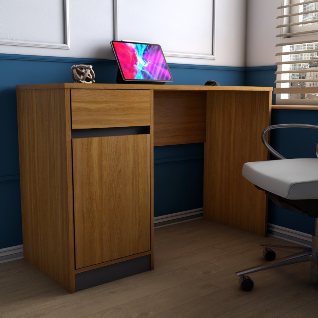 Mesa Escrivaninha Alune 1 Porta 1 Gaveta Freijó/Grafite - Panorama Móveis