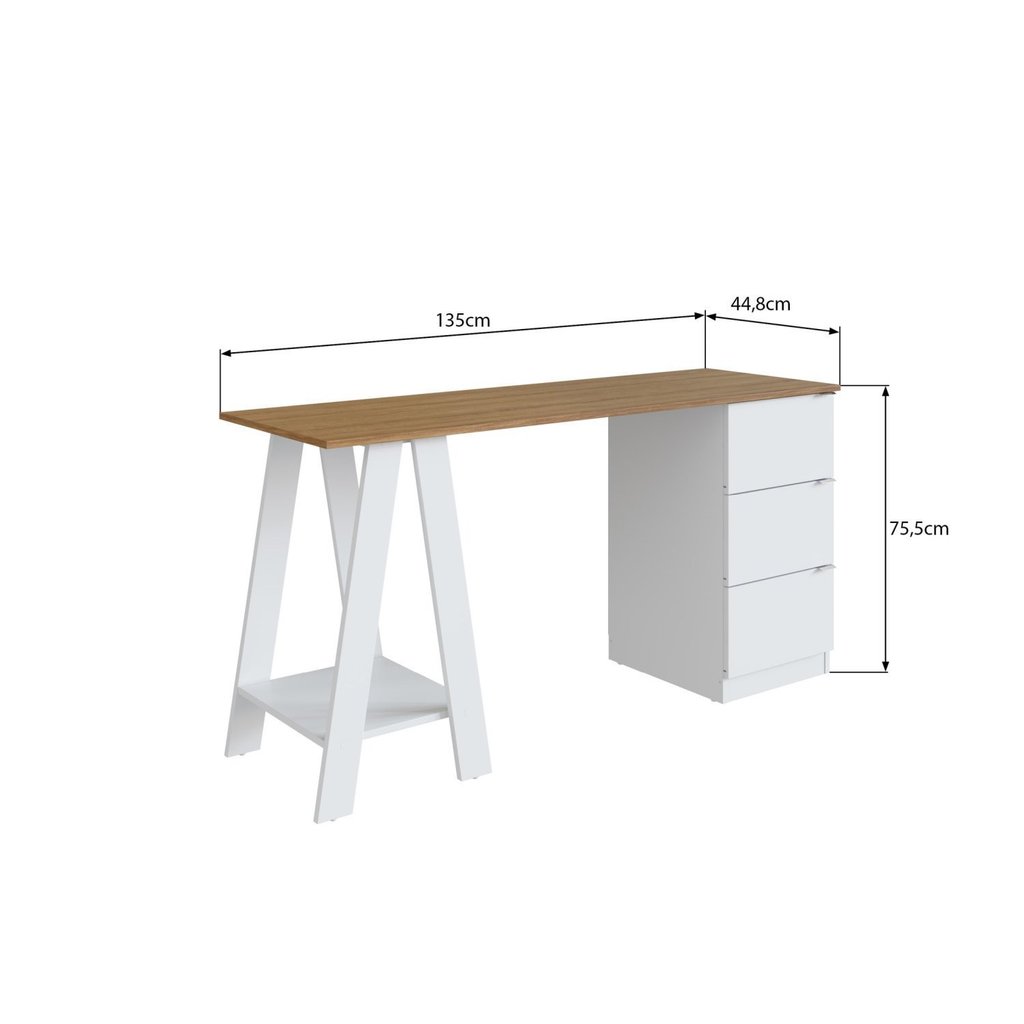 Mesa Escrivaninha Cavalete com Gavetas 135cm Mel/Branco