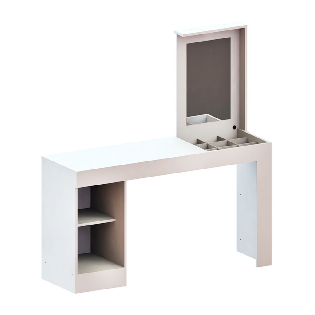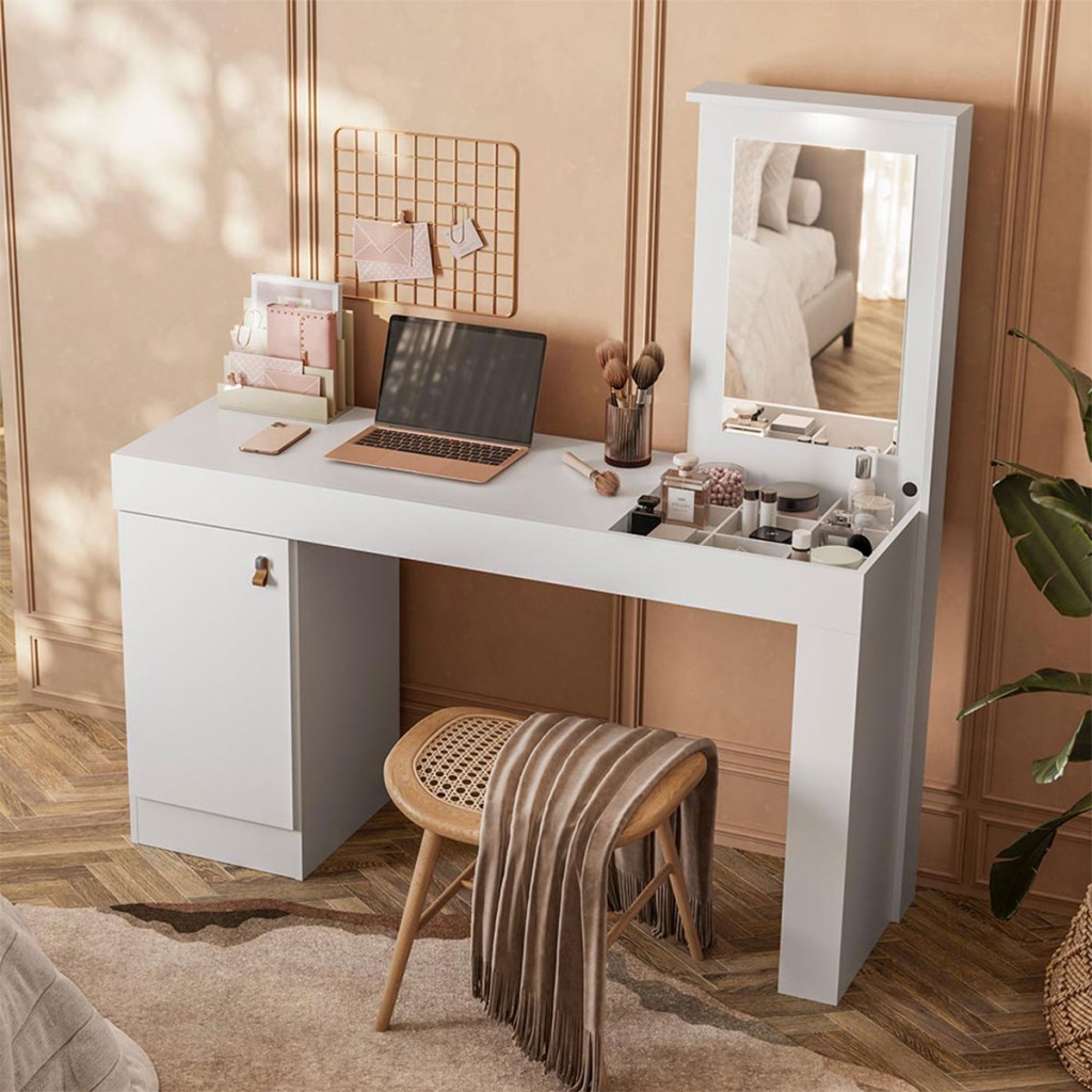 Mesa Escrivaninha e Penteadeira Versa Home 1 Porta com Espelho Branco - Telasul