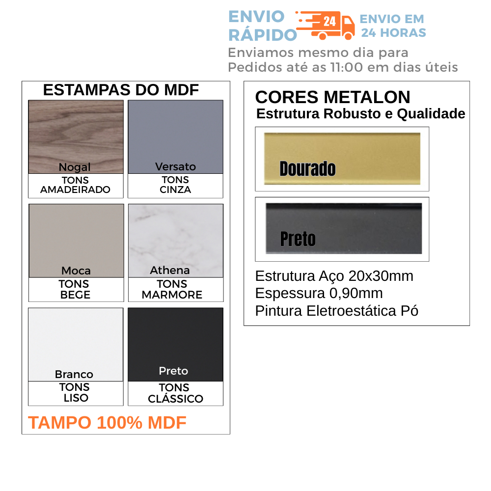 Mesa de Escritório Home Office Estilo Industrial Metalon Dourado com tampo Athena ou Branco - 100cm Escrivaninha para quarto 🎁Nossa Embalagem foi projetada para evitar avarias o transporte. 📐Informações Específicas - 75 cm de altura - 100 cm de largura - 50 cm de profundidade - Estrutura em Metalon - Aço Carbono - 20 x 20 - chapa 0,90 - Pintura eletrostática à pó - - Tampo em 100% MDF PREMIUM de 15 mm 🩷Características Gerais do Produto: • Cor do Metalon: Dourado • Altura: 75 cm • Largura: 100cm • Comprimento: 50 cm 🛠️Acompanha o produto: • 1 Mesa Home Office • 1 Chave de montagem • 1 Kit parafuso para montagem • 1 Manual para montagem • Suporte da Fabrica para qualquer duvida Garantia: • 90 dias de Fabrica direto com a gente pois somos os fabricantes Um Equilíbrio Perfeito Entre o Moderno e o Conforto A Mesa de Escritório Office Estilo Industrial Casa Decor Lis é ideal para você que busca um móvel funcional e com uma estrutura de alta qualidade. Produzido com tampo 100% MDF e pintura em Melamina BP, que possui uma superfície fechada reduzindo a proliferação de micro organismos e facilitando a higienização, proporcionando maior durabilidade além de garantir toque e visual mais agradável. A estrutura em aço carbono proporcionará uma vida útil maior ao móvel. Outro ponto positivo nesse produto é o acabamento da estrutura da mesa que é feito em pintura eletrostática, que proporciona um nível de acabamento melhor e de maior resistência. : Escolha duas opções de cores do tampo nesse item *Branco Basico mas que combina com qualquer ambiente *Athena nosso campeão de venda ****Embalagem especial*****