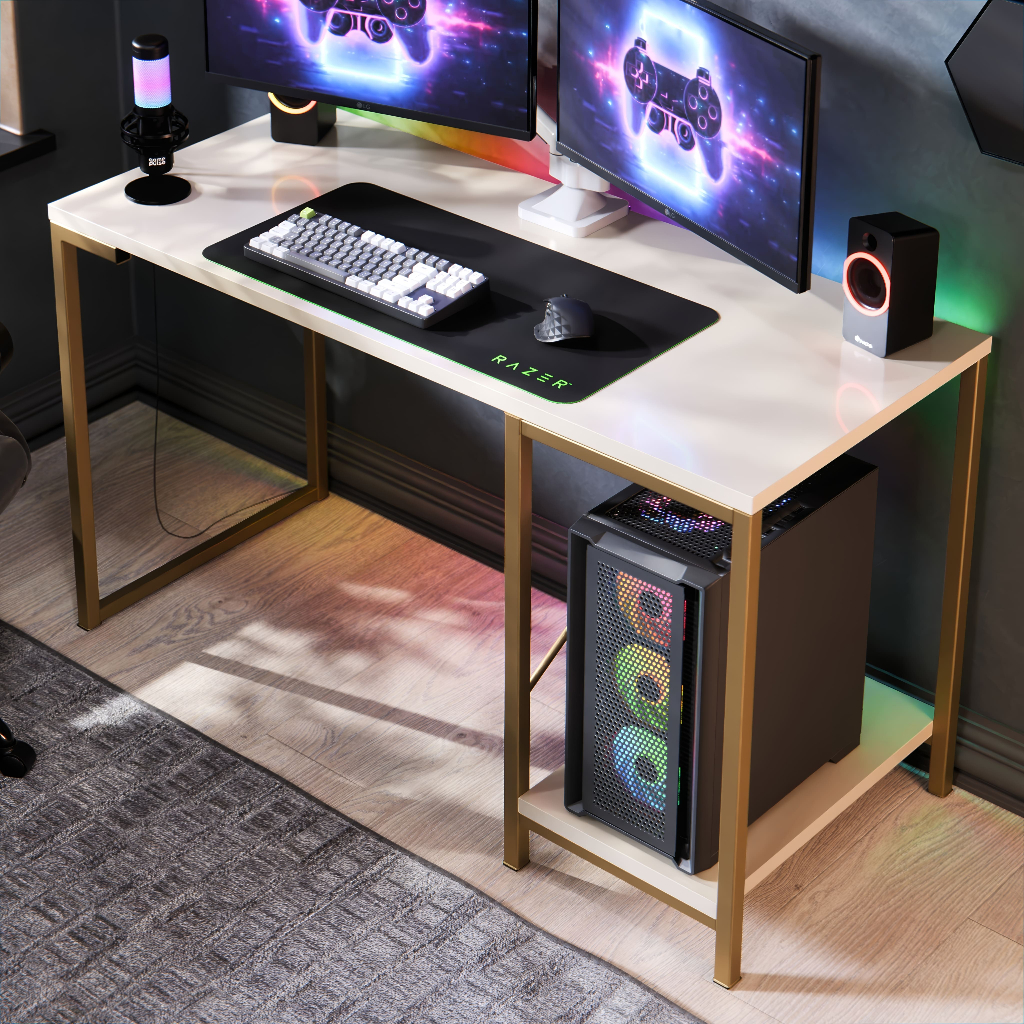 Mesa Escrivaninha Gamer e Home Office Tóquio Estilo Industrial com Prateleira em Aço e MDF