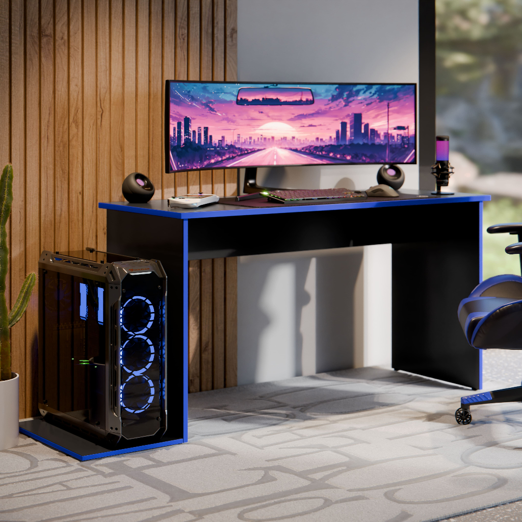 Mesa Escrivaninha Gamer Madri Com Suporte Para 2 Monitores E CPU