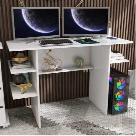 Mesa Gamer suporte de PC com 3 prateleiras e alta resistência, durabilidade e acabamento. Pode ser utilizado para quartos, escritórios, lavanderias, closets e para espaços comerciais etc. Mesa: [Altura]: 77cm [Largura]: 90cm [Profundidade]: 34cm NÃO INCLUI OBJETOS DECORATIVOS