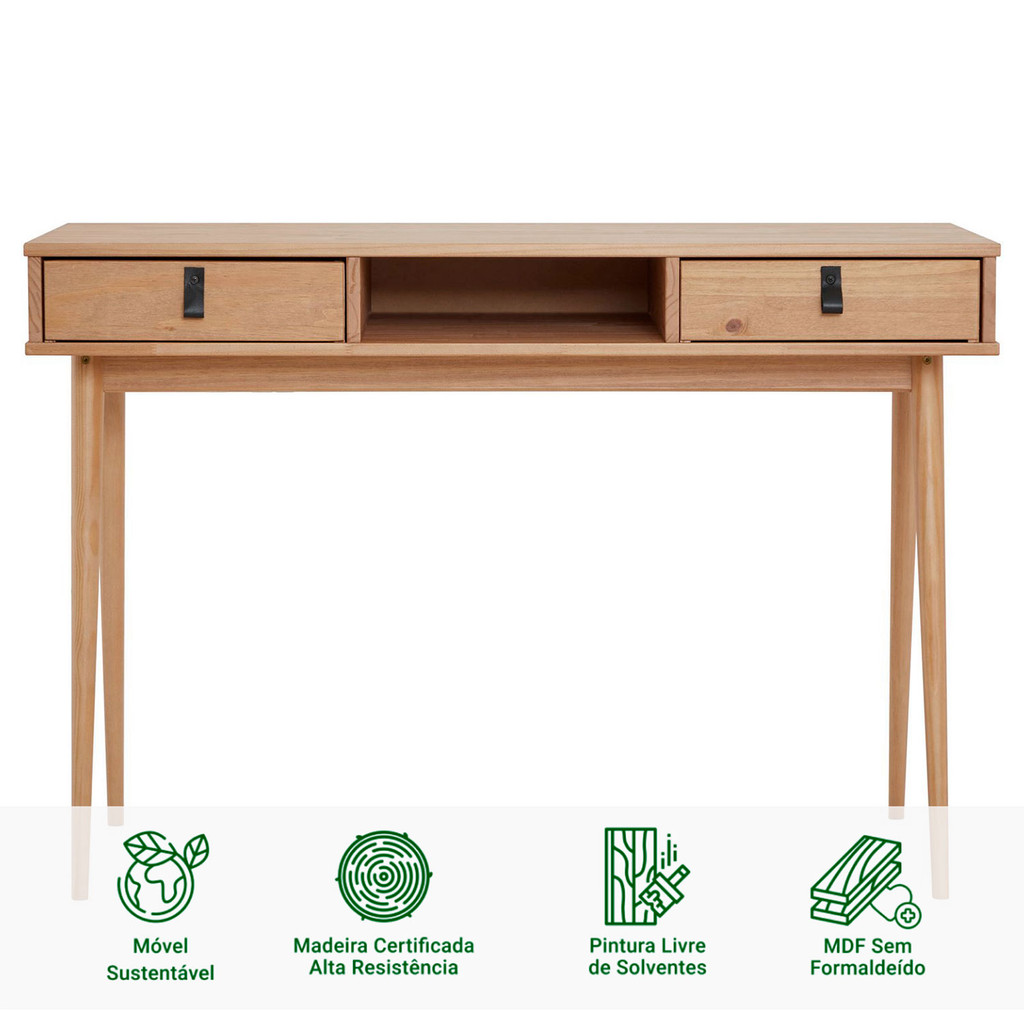 Mesa Escrivaninha Madeira 2 Gavetas 1 Nicho Retro Kim