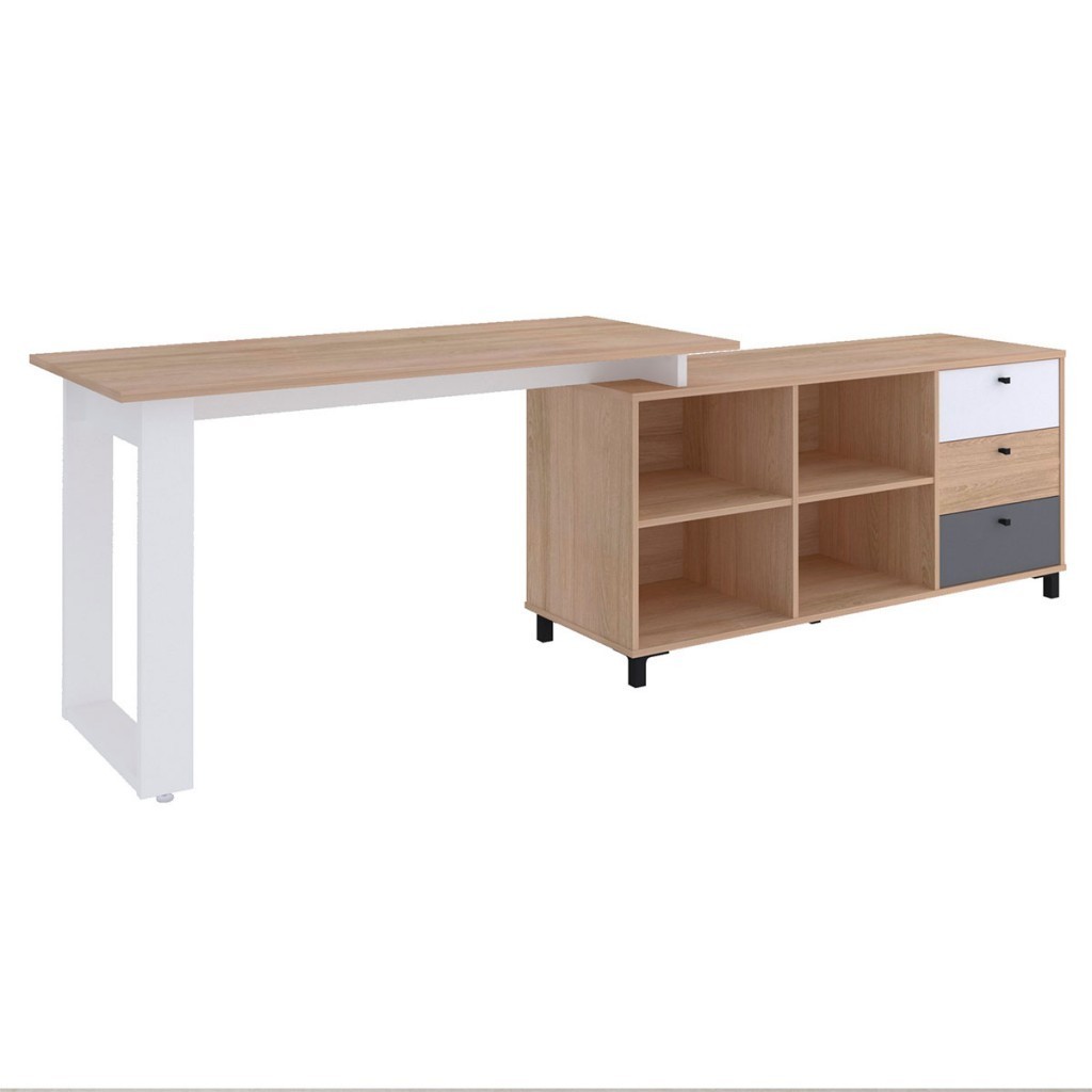 Mesa Escrivaninha Next 3 Gavetas Carvalho/Branco/Grafito - Artany Móveis