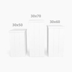 Trio de Mesas Fake Dobráveis em MDF – Kit para Decoração ACOMPANHA DOBRADIÇAS E PARAFUSOS PARA MONTAGEM Dimensões das Mesas: Mesa Grande: 30cm (largura) x 30cm (profundidade) x 70cm (altura) - Capacidade: 10kg Mesa Média: 30cm (largura) x 30cm (profundidade) x 60cm (altura) - Capacidade: 18kg Mesa Pequena: 30cm (largura) x 30cm (profundidade) x 50cm (altura) - Capacidade: 5kg Kit com 3 mesas decorativas em diferentes alturas (grande, média e pequena), ideais para festas e eventos. Reforçadas com MDF cru de 6mm, são dobráveis, fáceis de transportar, montagem rápida sem ferramentas e prontas para personalização com pintura, tecido ou adesivo. Perfeitas para mesas de doces, aniversários, casamentos, vitrines, cenários fotográficos e eventos corporativos. ✔ Dobráveis e compactas ✔ Leves, resistentes e estáveis ✔ Visual profissional ✔ Substituem aluguel de mesas Três tamanhos. Praticidade e versatilidade para sua decoração.
