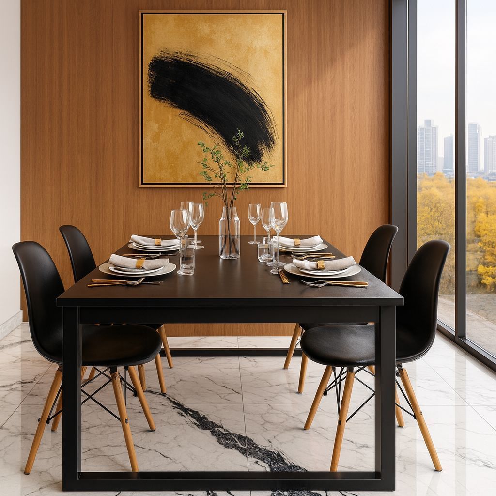 Mesa Industrial com 4 Cadeiras Eames – Durável e Elegante