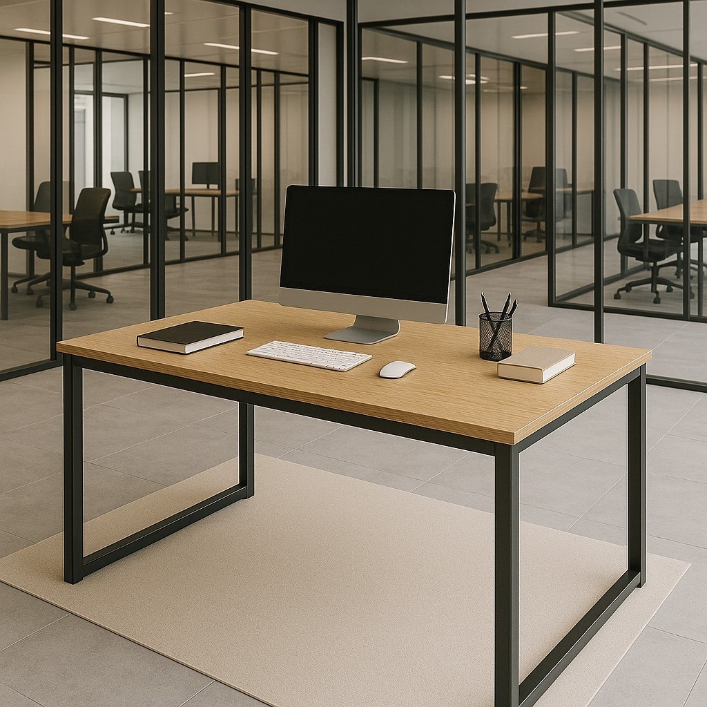 Mesa Industrial para Escritório 120x80 cm com Tampo de Madeira