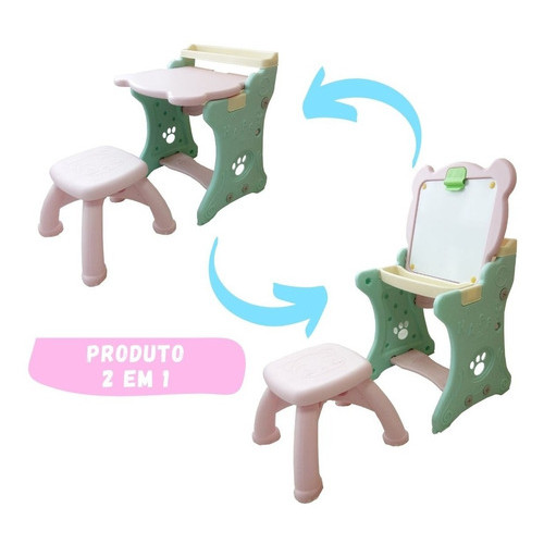Mesa Infantil Didática 2 Em 1 Com Lousa Inmetro Magnética Cor Verde Rosa Importway