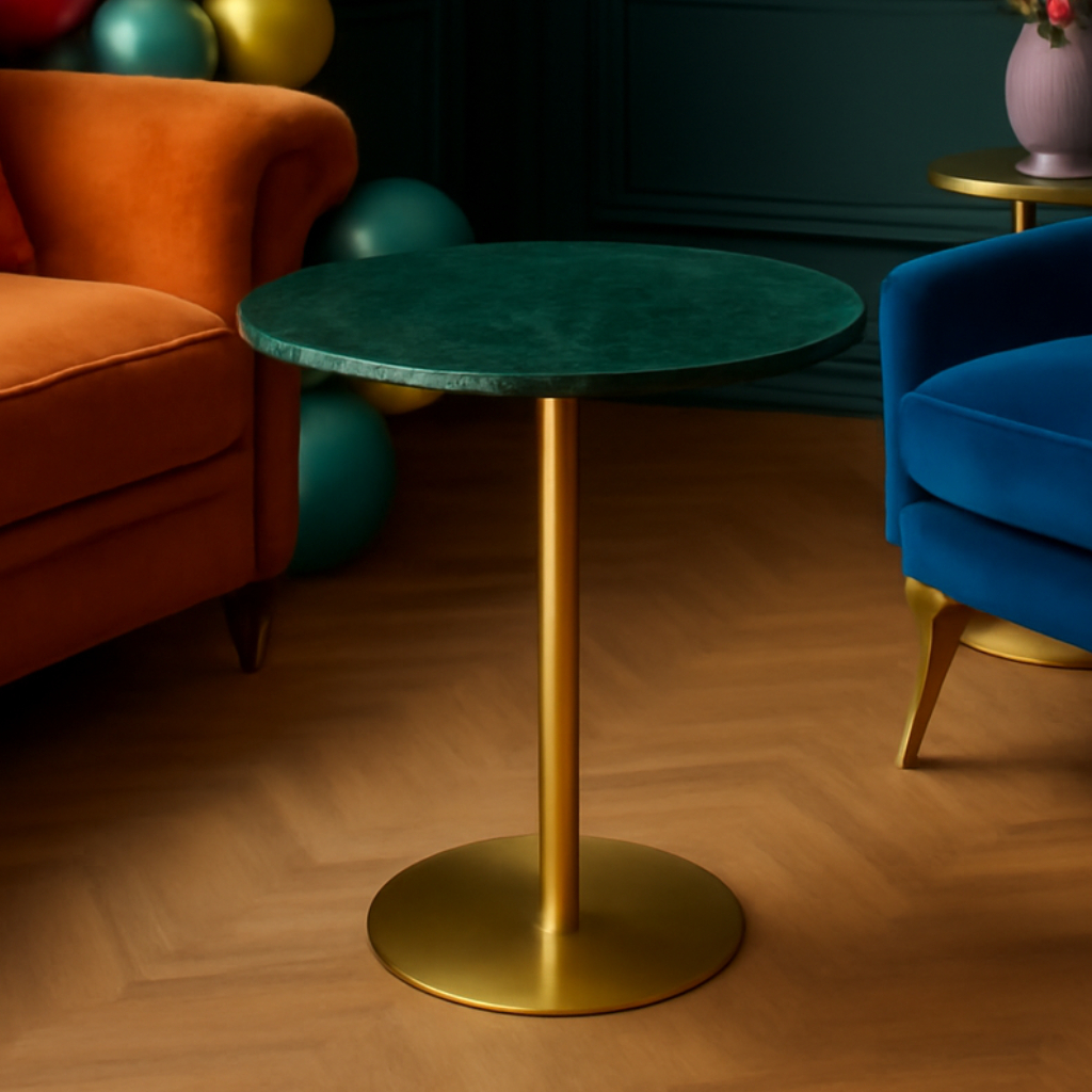 Mesa Lateral Redonda de Mármore Verde com Base Dourada - Elegância e Sofisticação para Seu Ambiente Transforme seu espaço com a nossa mesa lateral redonda, que combina a beleza natural do mármore verde com a sofisticação da base dourada. Perfeita para salas de estar, escritórios ou qualquer ambiente que precise de um toque de luxo. Design Exclusivo: Tampo de mármore verde com veios delicados, criando um visual único e moderno. Estrutura Robusta: Base metálica dourada, trazendo equilíbrio e elegância à peça. Versatilidade: Ideal para complementar sofás, poltronas ou outros móveis, adicionando funcionalidade e estilo ao ambiente. Acabamento de Alta Qualidade: Detalhes refinados que garantem durabilidade e um acabamento impecável. Com um design minimalista e atemporal, esta mesa é a escolha perfeita para quem busca um toque de luxo e sofisticação.
