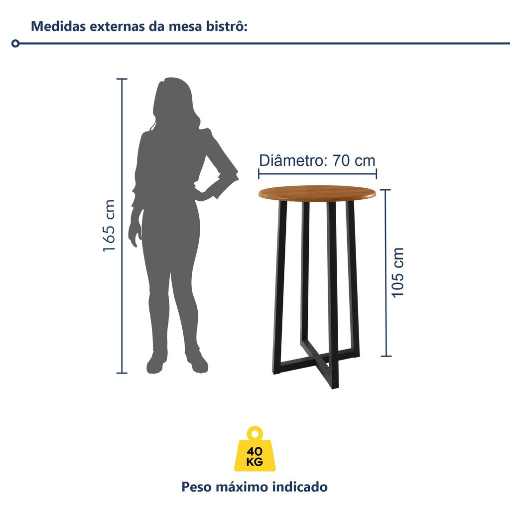 A Mesa Bistrô Coliseu é perfeita para varandas, áreas gourmet e pequenos espaços que pedem estilo e funcionalidade. Seu tampo redondo traz charme e sofisticação, enquanto a estrutura em aço garante durabilidade e estabilidade. Compacta e prática, acomoda até 3 pessoas com conforto, sendo ideal para momentos descontraídos no dia a dia ou em encontros especiais. Fácil de limpar e resistente, é a escolha certa para quem busca beleza e praticidade em um único produto. Essa mesa é ideal para quantas pessoas? Ela acomoda confortavelmente até 3 pessoas. Pode ser usada em área externa? Sim, desde que seja em local coberto para maior durabilidade do tampo em MDF. Estilo: Moderno Formato: Redondo Peso (kg): 14.5 Garantia: 03 Meses Altura (cm): 105 Acabamento: Pintura Texturizada UV Extensível: Não Largura (cm): 70 Cor da Base: Preto Cor do Tampo: Natural Possui Vidro: Não Possui Rodízio: Não Suporta Até (kg): 15 Profundidade (cm): 70 Escala de Brilho: Semi-Fosco Material da Base: Aço Material do Tampo: Madeira Maciça Origem do Produto: Nacional Ambiente Principal: Sala de Jantar Material Principal: Madeira Maciça Quantidade de Lugares: 3 Tipo de Madeira Maciça: Pinus Tipo de Madeira Maciça do Tampo: Pinus Marca: PAONANDA DECOR Cor do Produto: Preto / Marrom Itens Inclusos: 1 Mesa, 1 Manual de Montagem e 1 Kit ferragem. Cor Predominante: Marrom