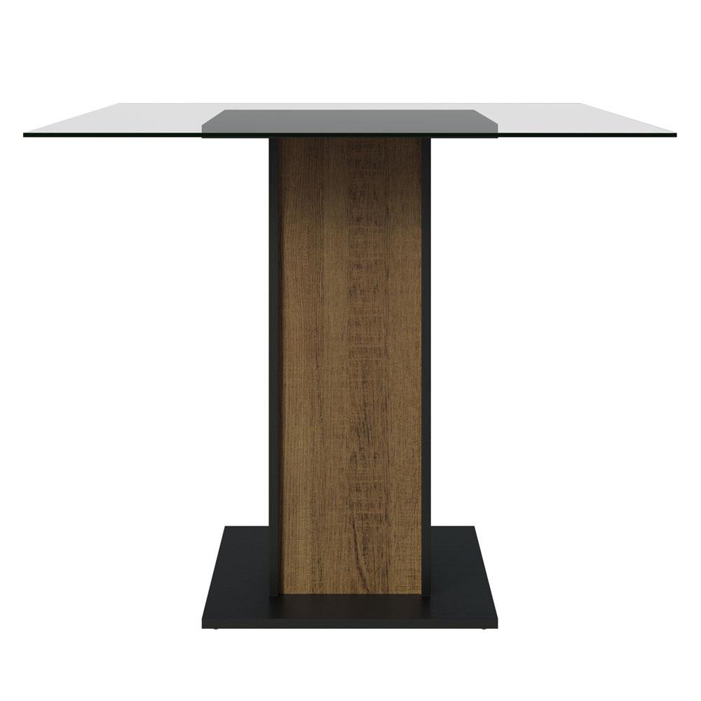 Mesa Madesa Quadrada com Tampo de Vidro 5332A - Preto/Rustic