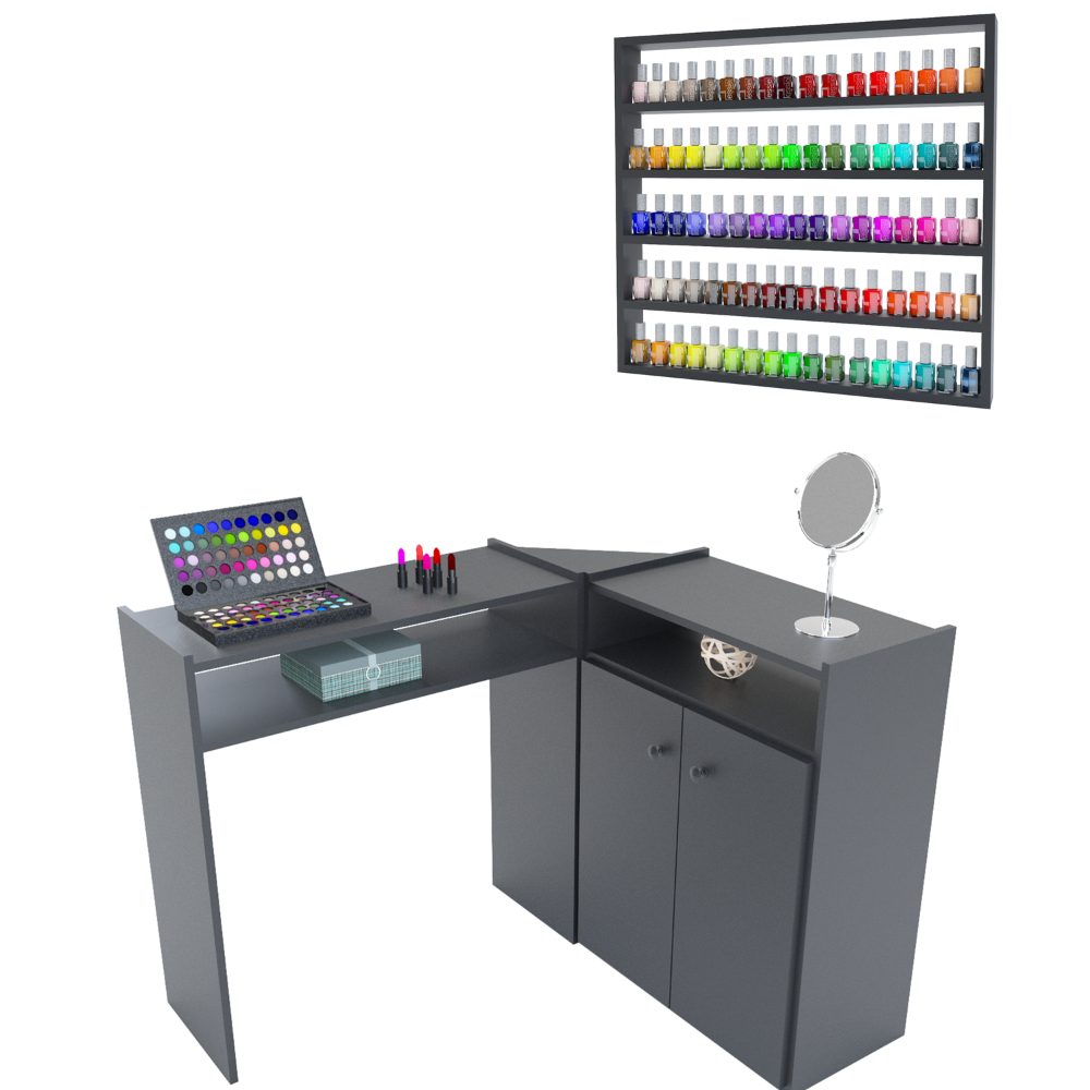 Mesa Manicure Com Armário Profissional Nail Design e Expositor Premium para Esmaltes