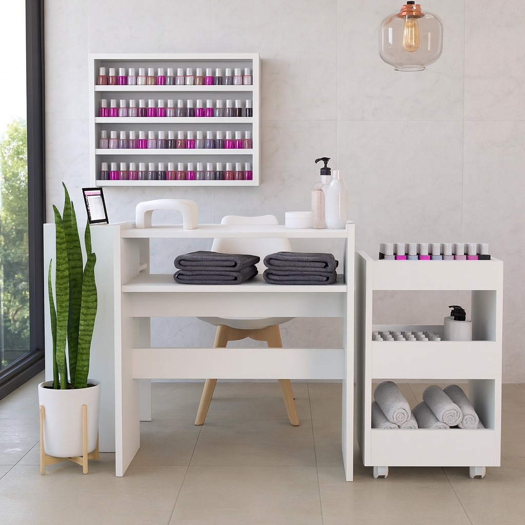 Conjunto Mesa e Carrinho Auxiliar para Manicure – Compacto, Funcional e Elegante! Bem-vindo à RCC – Grupo Vec! Transforme seu espaço de atendimento com este conjunto completo para manicure, ideal para quem busca praticidade, organização e um visual profissional. Com design moderno e compacto, ele é perfeito para salões, estúdios de beleza ou uso doméstico. Mesa para Manicure • Medidas: o Comprimento: 70 cm o Largura: 30 cm o Altura: 77 cm • Material: MDP de 15 mm – leve, resistente e com excelente acabamento. • Cor: Branco – versátil e fácil de combinar com qualquer decoração. • Acompanha: o Kit de montagem com parafusos o Pés da mesa o Tapa-furo para acabamento limpo • Diferenciais: o 1 prateleira inferior para organizar materiais o Estrutura firme que não balança durante o uso o Suporta até 15 kg Carrinho Auxiliar para Manicure • Medidas: o Altura: 65 cm o Largura: 39 cm o Profundidade: 30 cm • Espaço entre prateleiras: 19 cm • Altura útil entre prateleiras: 24,5 cm • Capacidade de carga: até 15 kg • Peso: 6,9 kg • Ideal para organizar esmaltes, acessórios e utensílios com praticidade. NÃO ACOMPANHA O EXPOSITOR DE ESMALTES!! Este conjunto é a escolha certa para quem busca um ambiente organizado, funcional e com ótimo custo-benefício. Aproveite para oferecer um atendimento mais profissional e confortável às suas clientes!