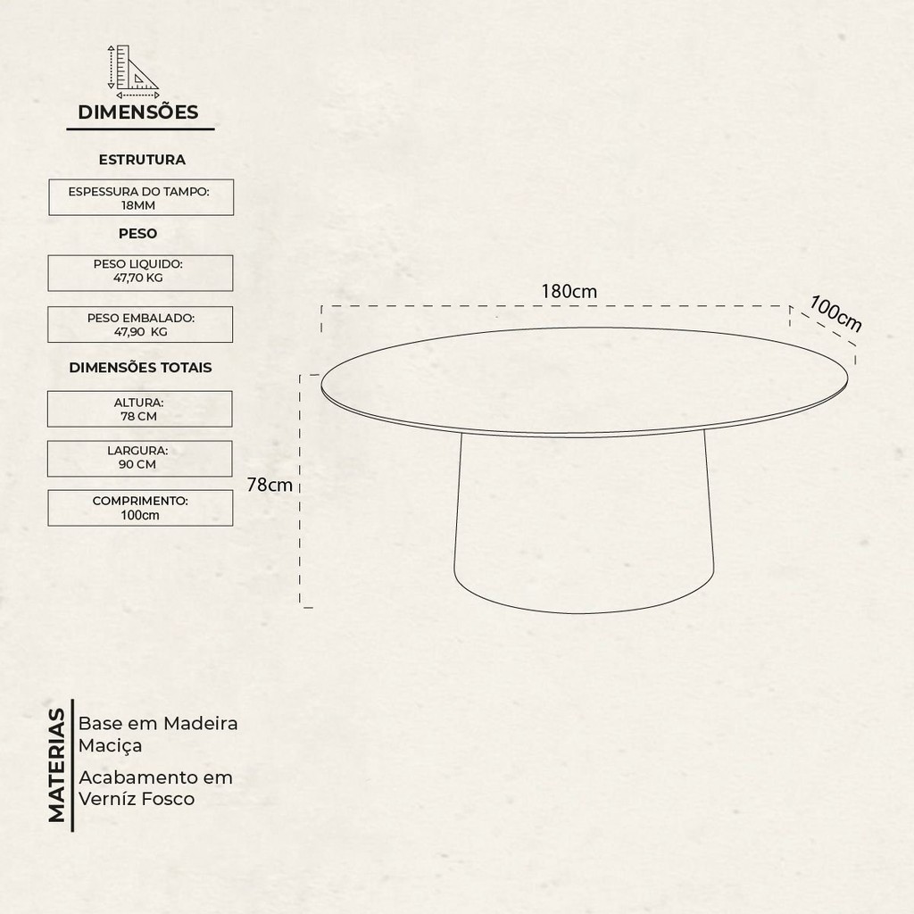 Mesa Oval Design Moderno 180cm X 100cm Base em Madeira Maciça Amanda 180