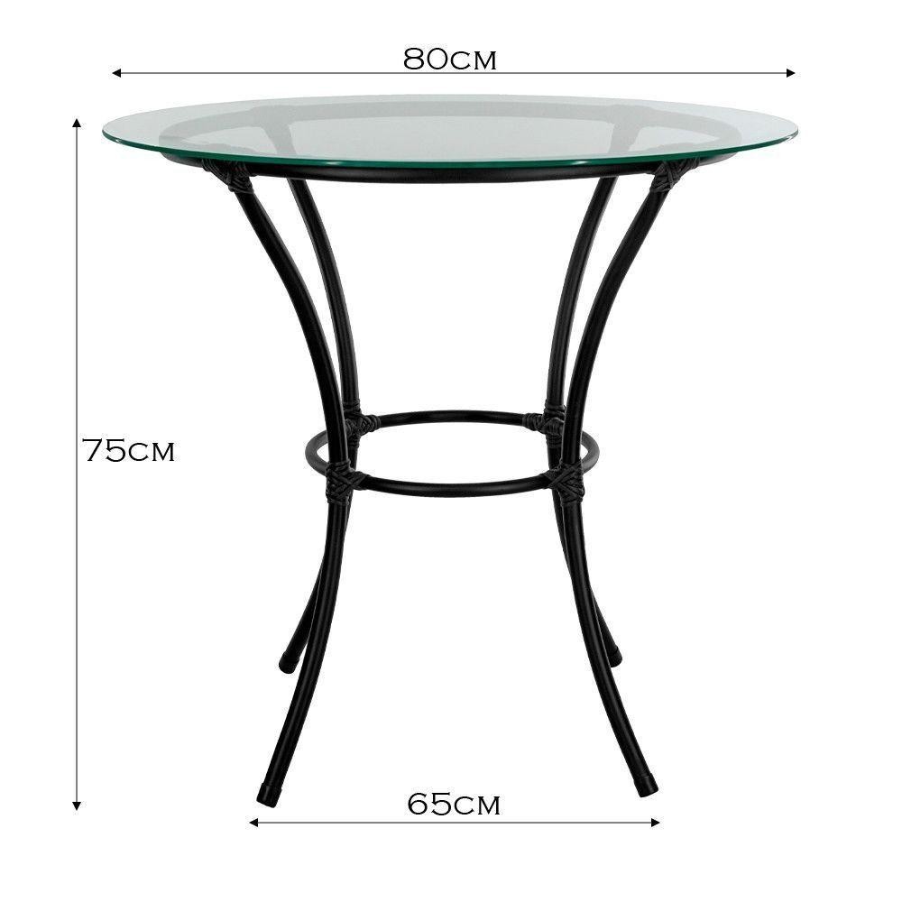 Mesa Para área Externa Redonda Happy Hour De Aço E Fibra Sintética E Vidro 80 Cm Acesse Móveis Preto